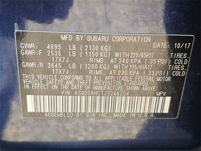 - VIN : 4S4BSAHC1J3246204